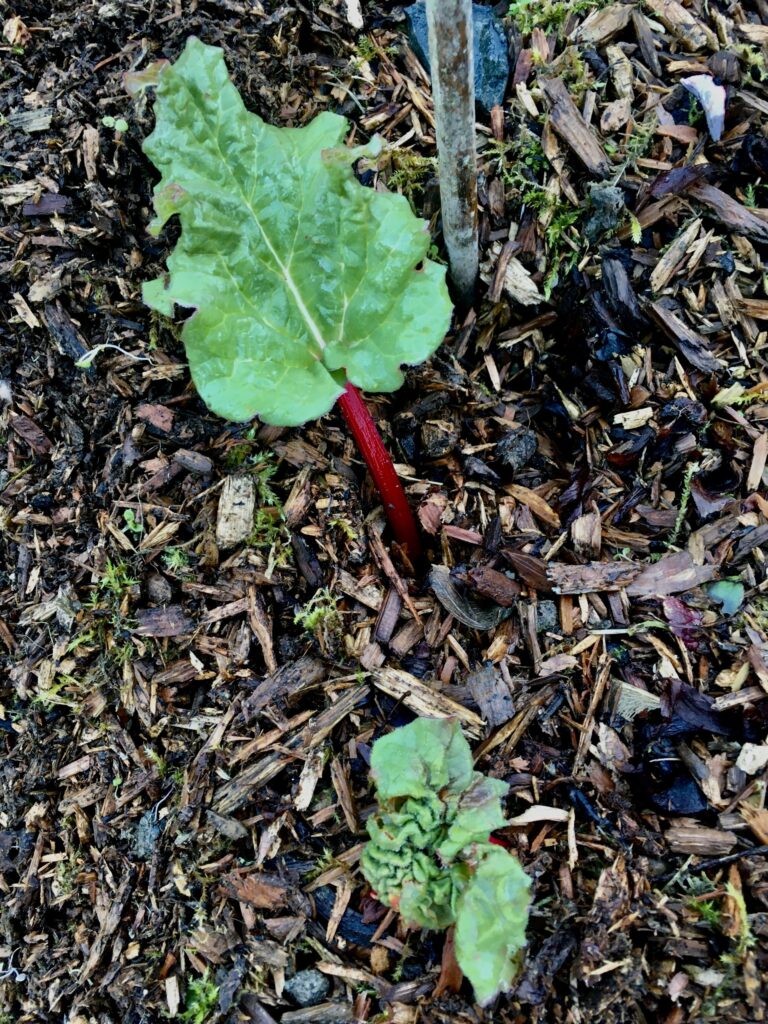 The lettuces are tucked in nicely and thriving and the rhubarb is springing back into life,,,