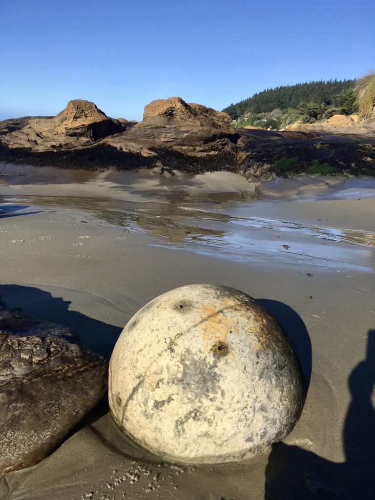 Moeraki, with its round boulders in the ocean is just around the corner, it appears one floated this way! ๐