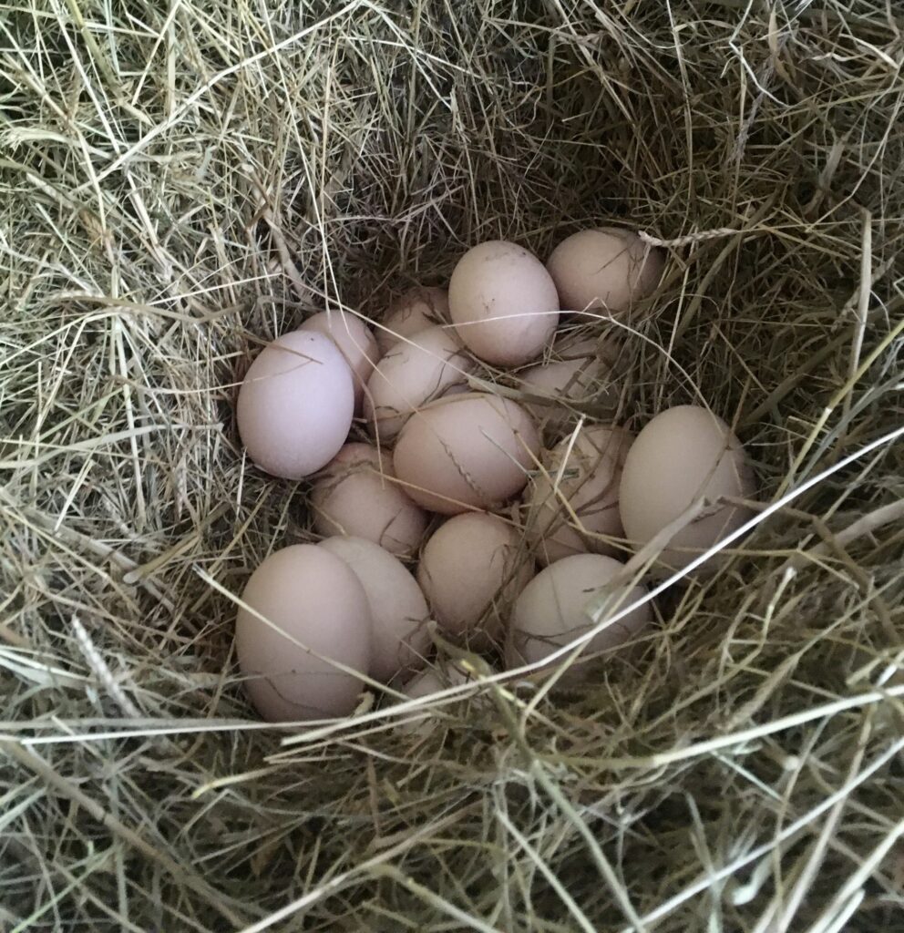 Rich and I have been searching high and low for nests, we knew the girls were laying somewhere hidden despite getting regular eggs in the chook house. By chance as I was sorting out the barn area for Sophie and Secret, I found a nest in the hay! Over the summer the girls don’t eat much hay, so I guess it was the perfect spot, especially given all the wet weather. We have also discovered they are laying in the little house we first had the piglets in and are now laying in the big pig house right where the boys sleep! So surprised they aren’t eating them but appears not!